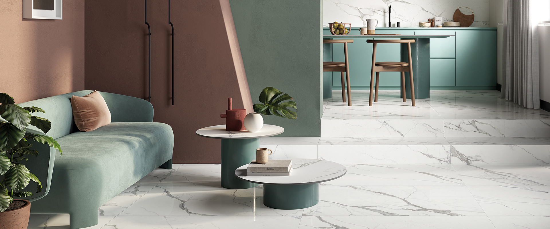 雕刻白紋理的磁磚紋理就如同白皙的大理石一般,透露著高雅典雅的氣息。其紋理流動自然,細膩而不失精緻,彷彿是岩石灰在經過時間的淬鍊之後,終於呈現出了這樣一種卓然不群的風貌