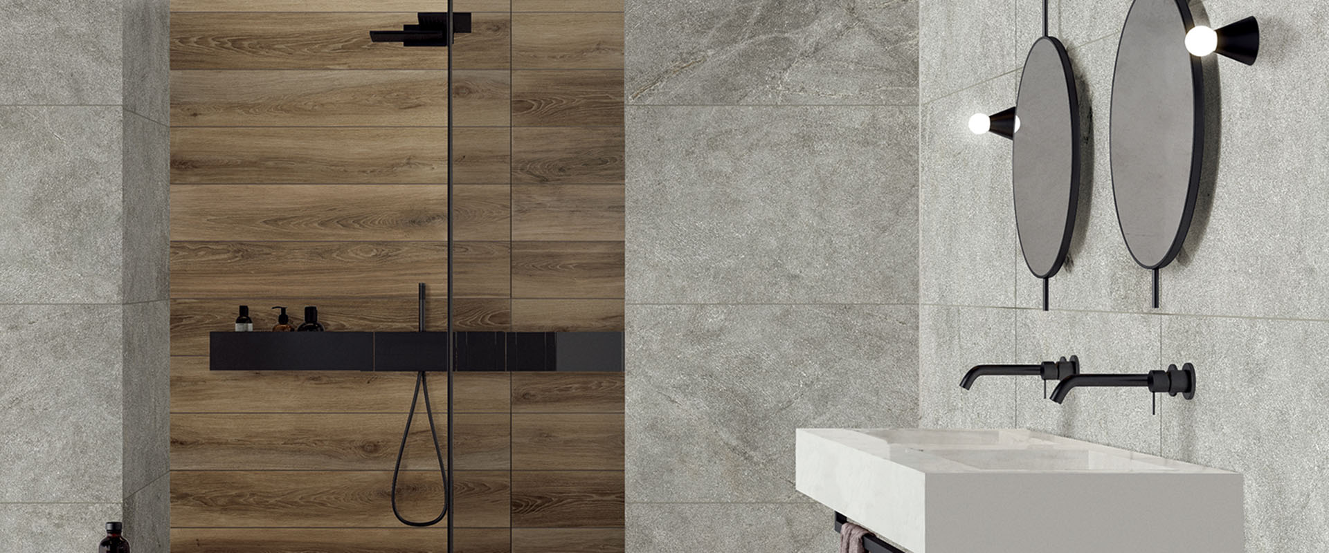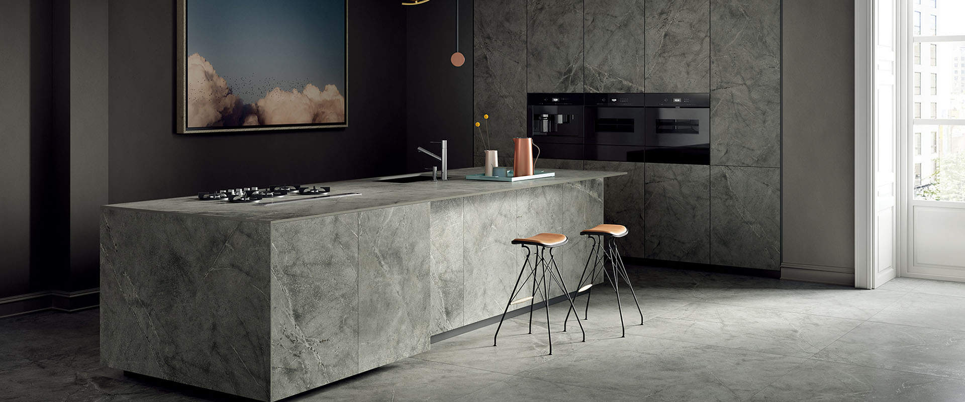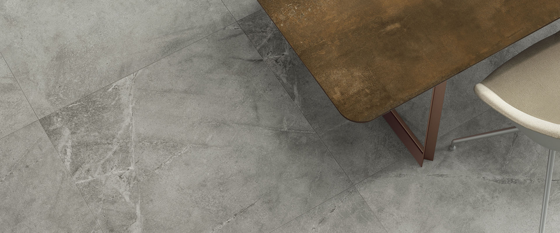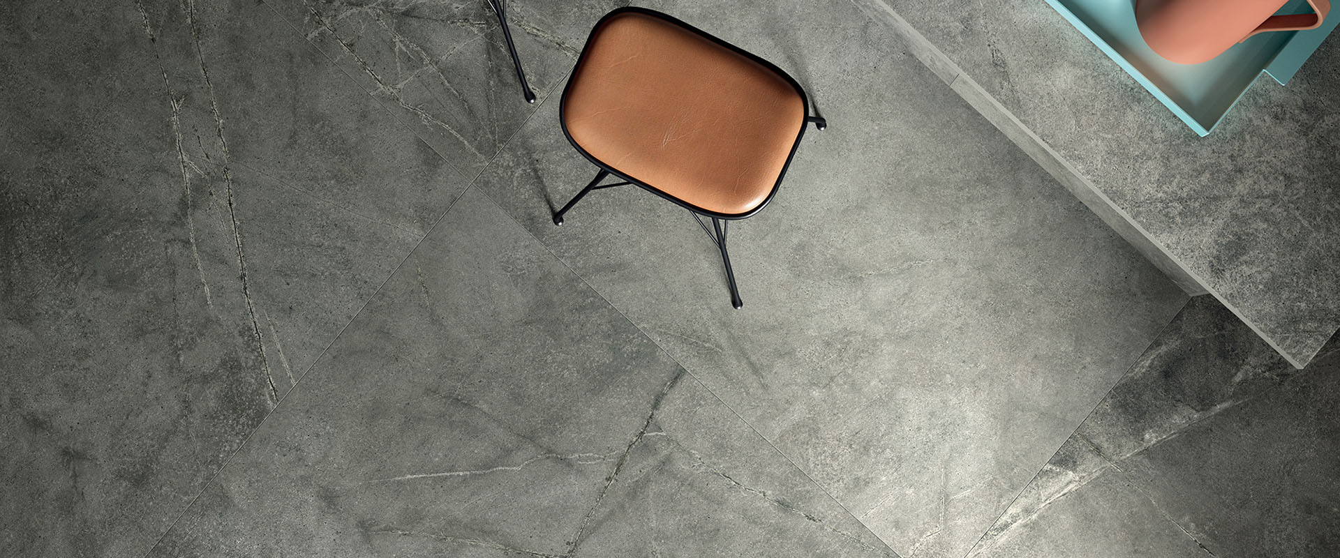 以灰階的底色配合表面富有張力的紋理,亞特蘭系列將火成岩多變的層次與大地的色澤加以結合
