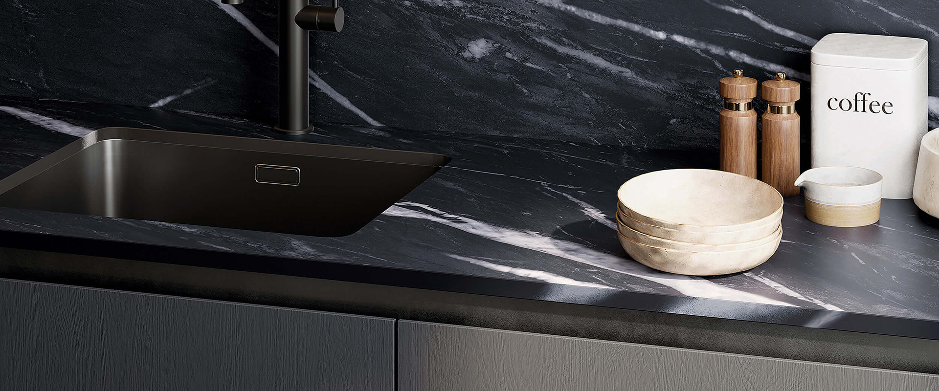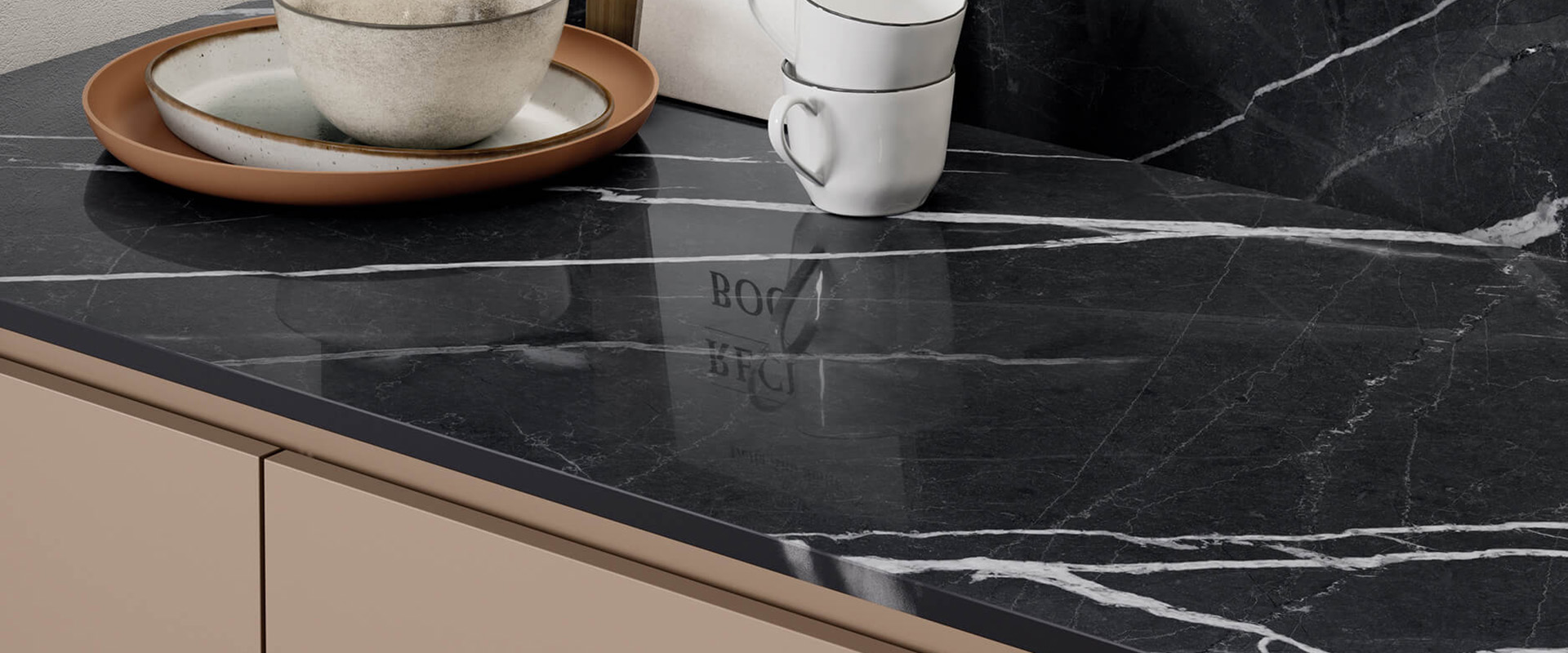 適用於高端住宅、奢華酒店、精品會所等場域,無論是應用於 地坪鋪設、背景牆、廚房檯面或傢俱點綴,皆能為空間注入深邃優雅的氛圍,締造簡約而非凡的視覺體驗。
