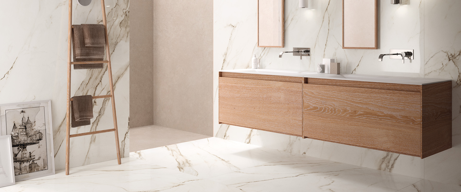 源自義大利設計,流動在山脈中的金黃色,卡拉卡塔金提供暖色調的大理石紋理,在豪華大器中也多了一分溫暖感受,柔和且高尚,拋光面的卡拉卡塔金,