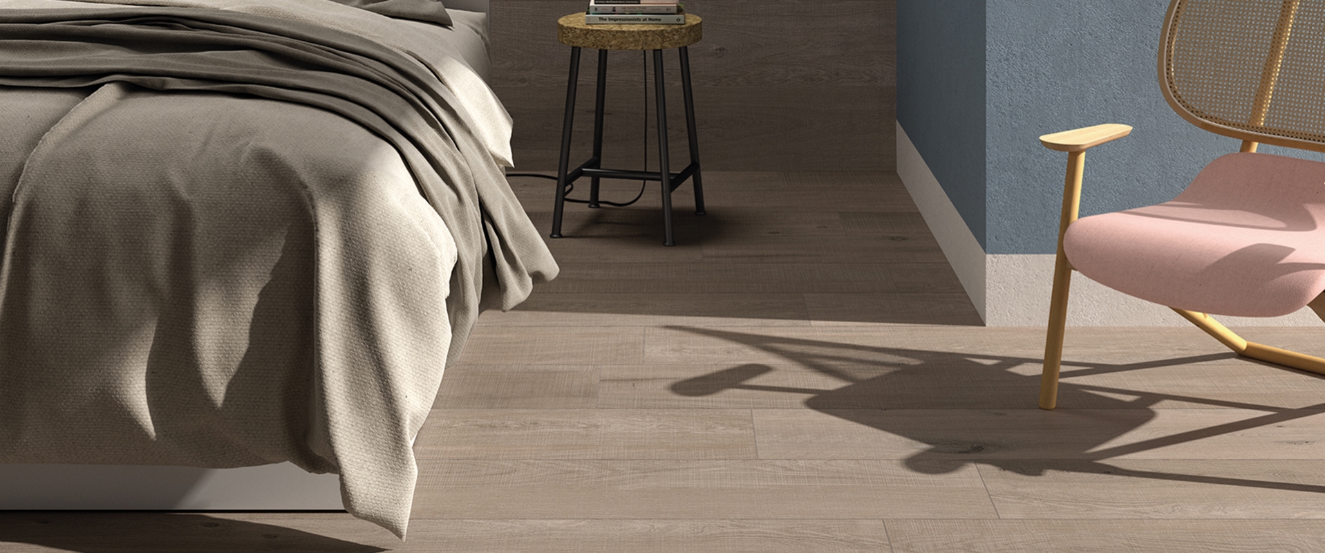靈感來源自森林中的原木,仿真度極高,完美復刻木紋的優雅柔和紋理。這些木紋不僅包括了年輪、木節等常見的紋理,還考慮到了油脂腺等細節,真實地呈現了原木的自然風貌。