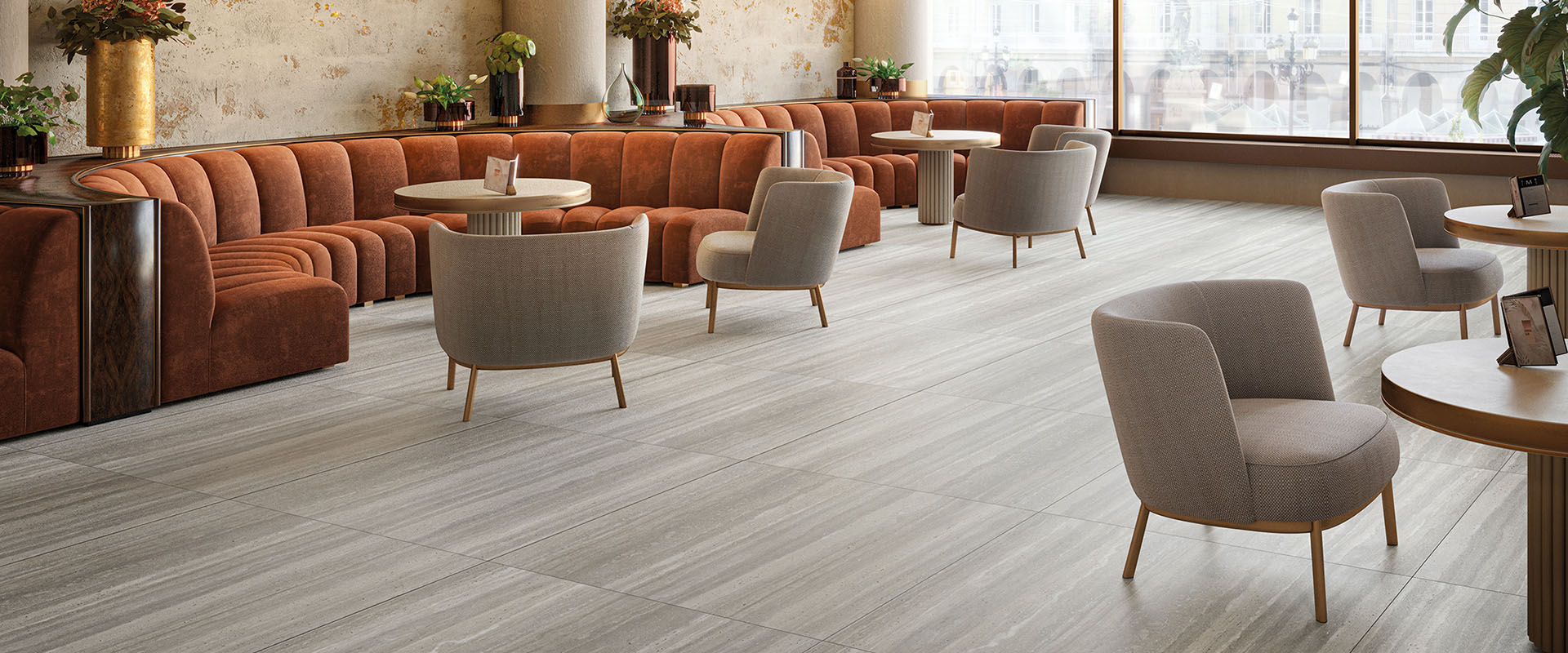 時光洞岩的磁磚紋理彷彿穿越時空,呈現出歷經歲月沉澱後的自然美學。透過細膩的孔洞紋理,彷若能看見大自然中的奇妙景觀,如山洞、地洞、海洞,讓人沉醉其中