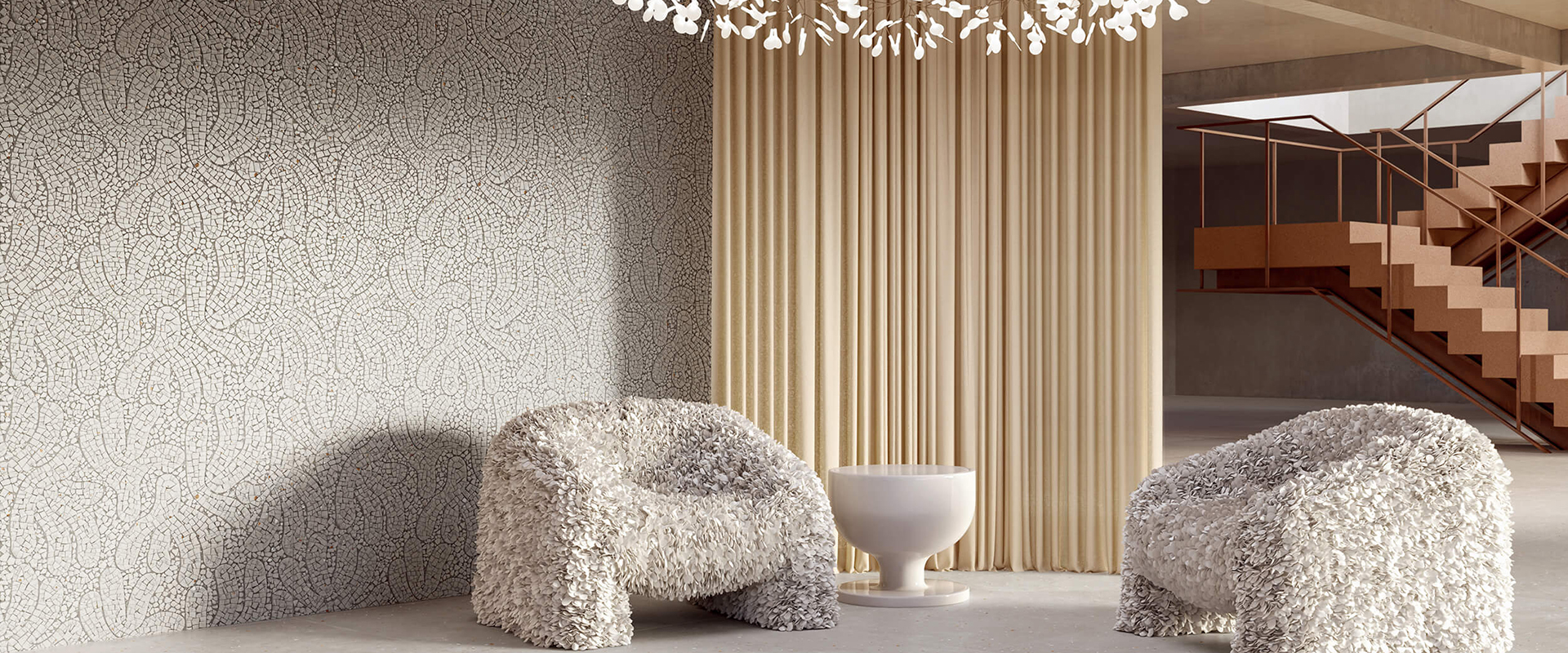 混凝灰沉靜內斂,如霧氣覆林;柔霧粉溫潤細膩,彷彿羽毛織就的繭巢。每一道弧線皆象徵守護與孕育,將大地化為冥想之所。