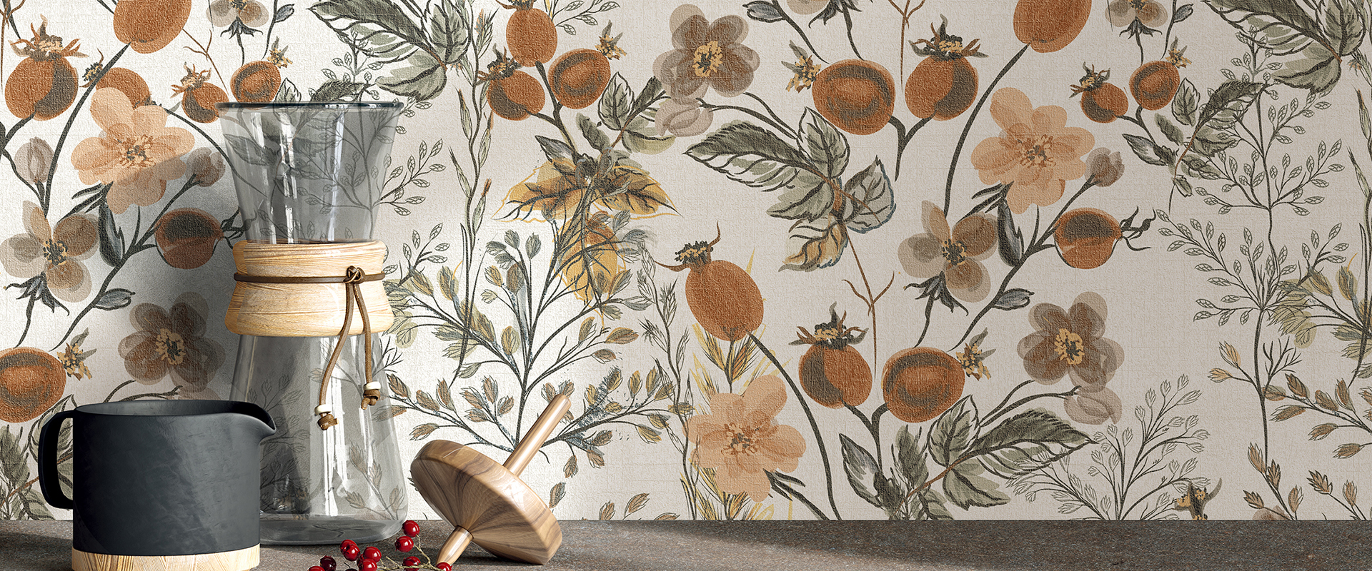 花語系列共有9種款式,融合了春夏秋冬不同的風貌與自然景色。徜徉於田園之春的豐碩溫潤,感受沁夏棕梠的舒心寧靜,探索雨林風情的熱情奔放。沉浸在薄暮之蕨的和煦沉靜中,漫步於茂宜花海的清新可人。擁抱枝茂葉繁的生意盎然,迷戀青花夜鶯的神秘典雅。沉醉在蕩漾玫瑰的古典浪漫,沐浴在馬若爾花園的鮮豔繽紛中。每一款式都是大自然的詩篇,讓您在建築空間中也能享受大自然的美好。