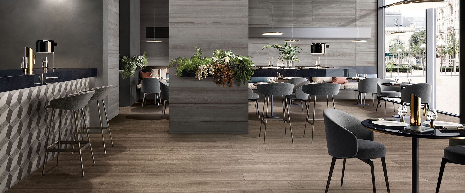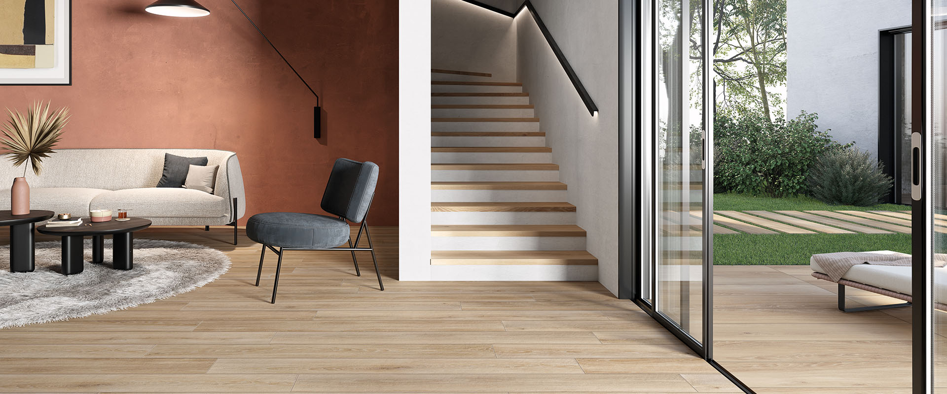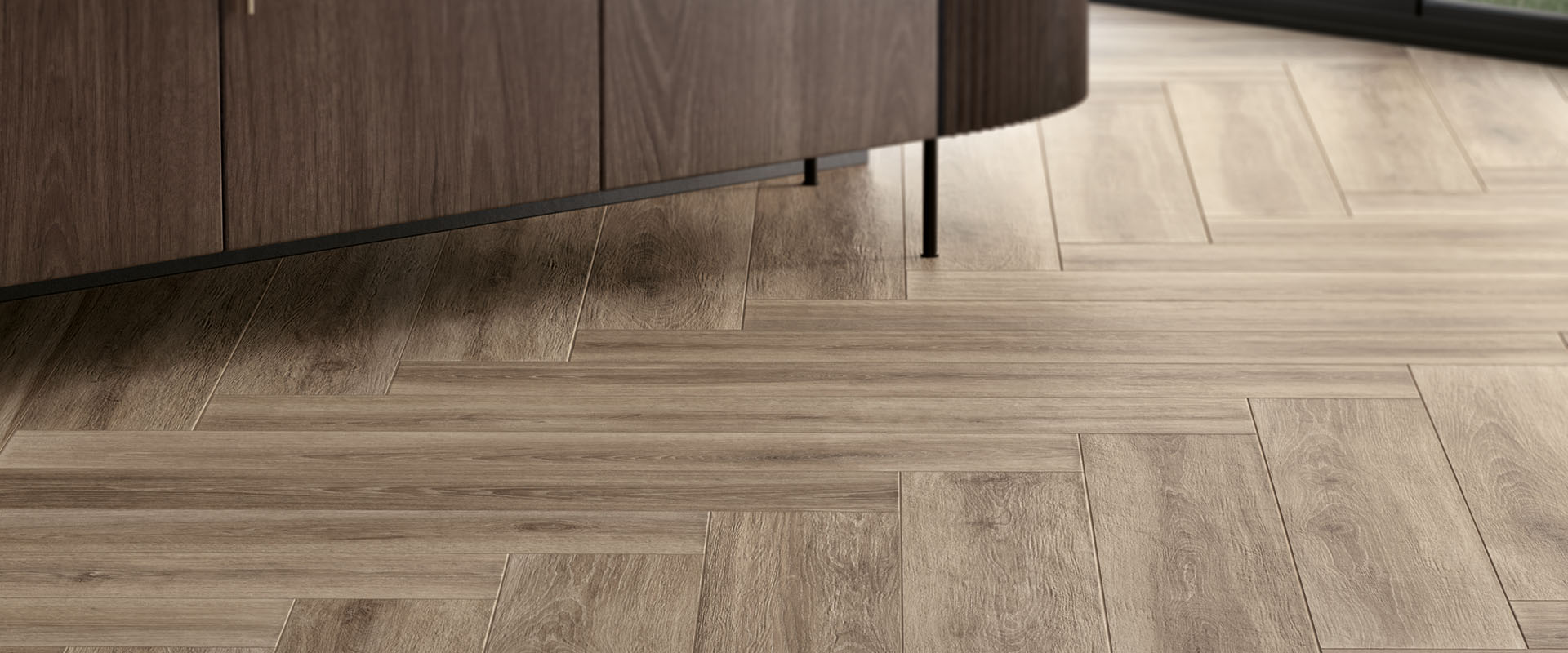 走進山林紀錄下樹紋真實的肌理,連深淺都寫實的複製在木紋磚上,如同踏在原木地板一般。結合原始木頭紋理,克服實木怕水的劣勢,並且提供更佳的耐磨性與硬度表現
