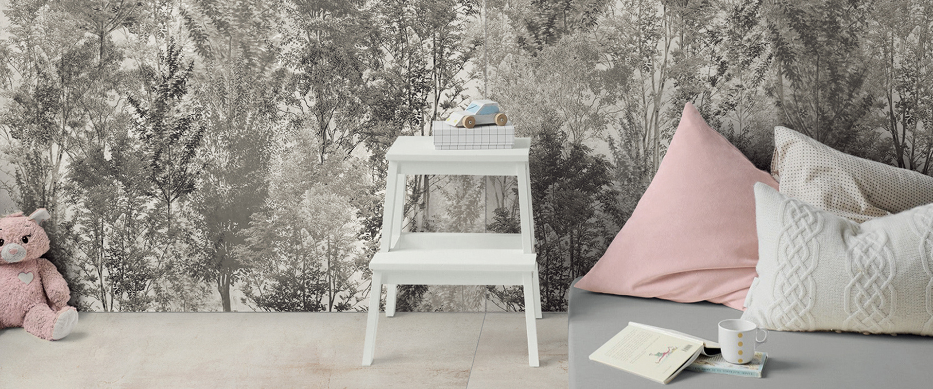細緻的紋理貼合空間表面,樸實淡雅的刻畫出自然界中的生命之美,為空間注入一股恬靜與平和,別有一番禪意