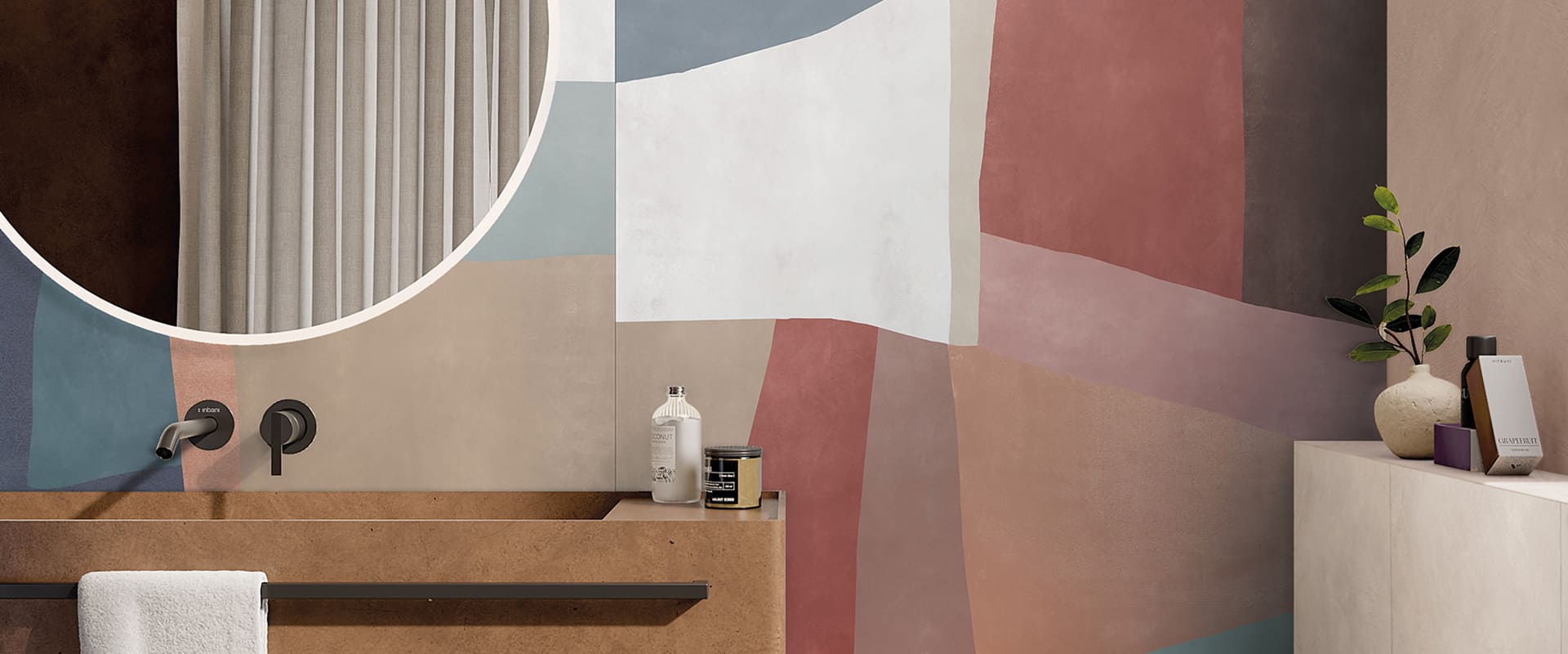 每位藝術家的靈感,都始於一塊調色盤。「調色盤」,以抽象拼接的方式,將暖紅、陶土橘、柔白、卡其、湖藍與深海藍等多種色塊交錯鋪陳,