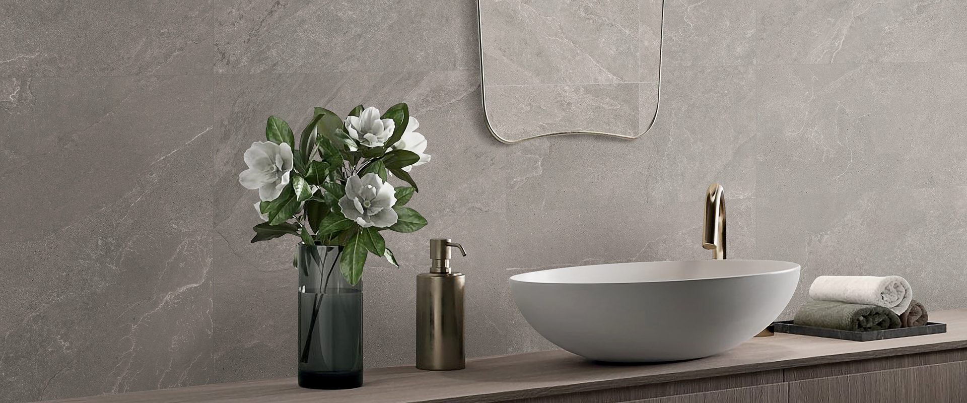 莫特利系列靈感源於多層岩石的自然風貌,將石材中細碎礦粒、微霧光澤與層層堆疊的紋理,以更精緻的方式凝鍊於磚面之上。