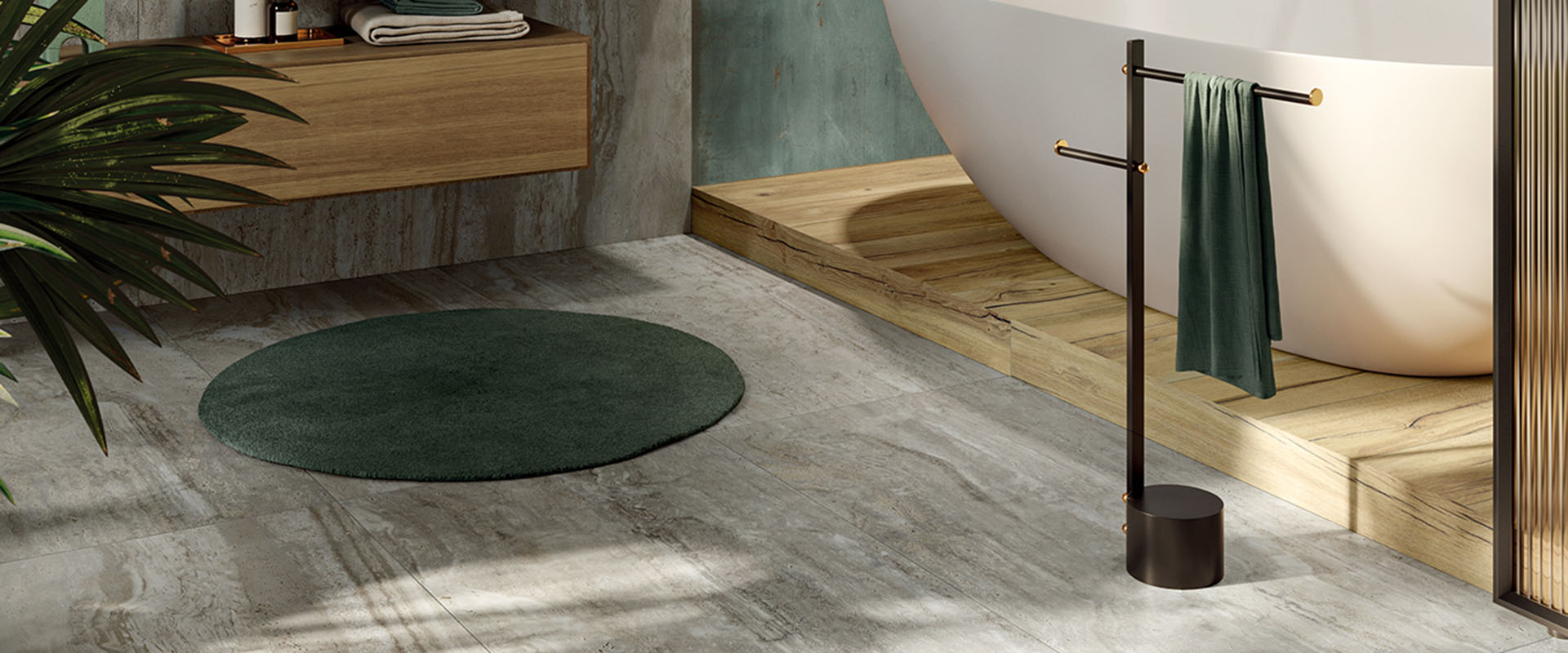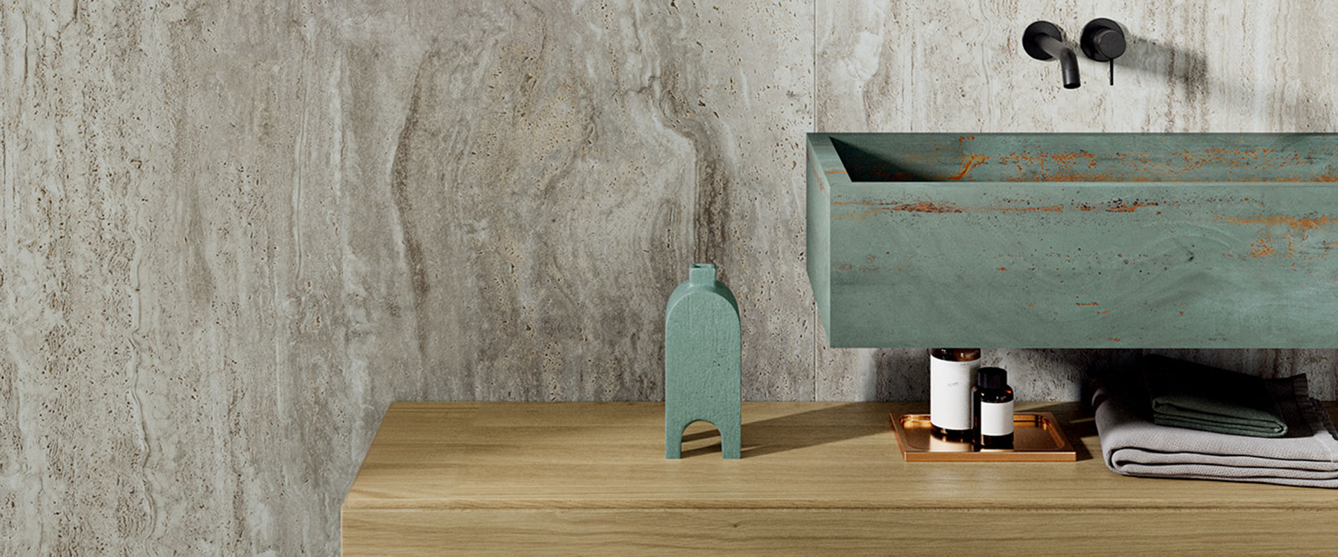 孔隙豐富的洞石一直深受古典而華貴的建築風格所青睞,銀灰洞石系列透過最先進的3D數位印刷技術模仿洞石標誌性孔隙的視覺效果