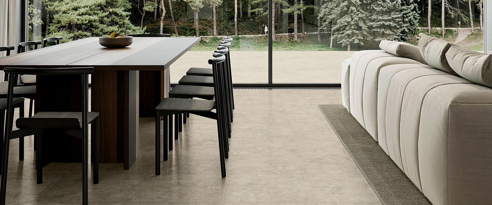 米白溫潤柔和,霧灰內斂克制,硝灰沉穩深邃,三種色階如晨霧與岩層交織,鋪陳出靜謐而細膩的層次。低調不張揚的石質表情,在光影流轉間展現自然深度,使空間保有呼吸與留白。