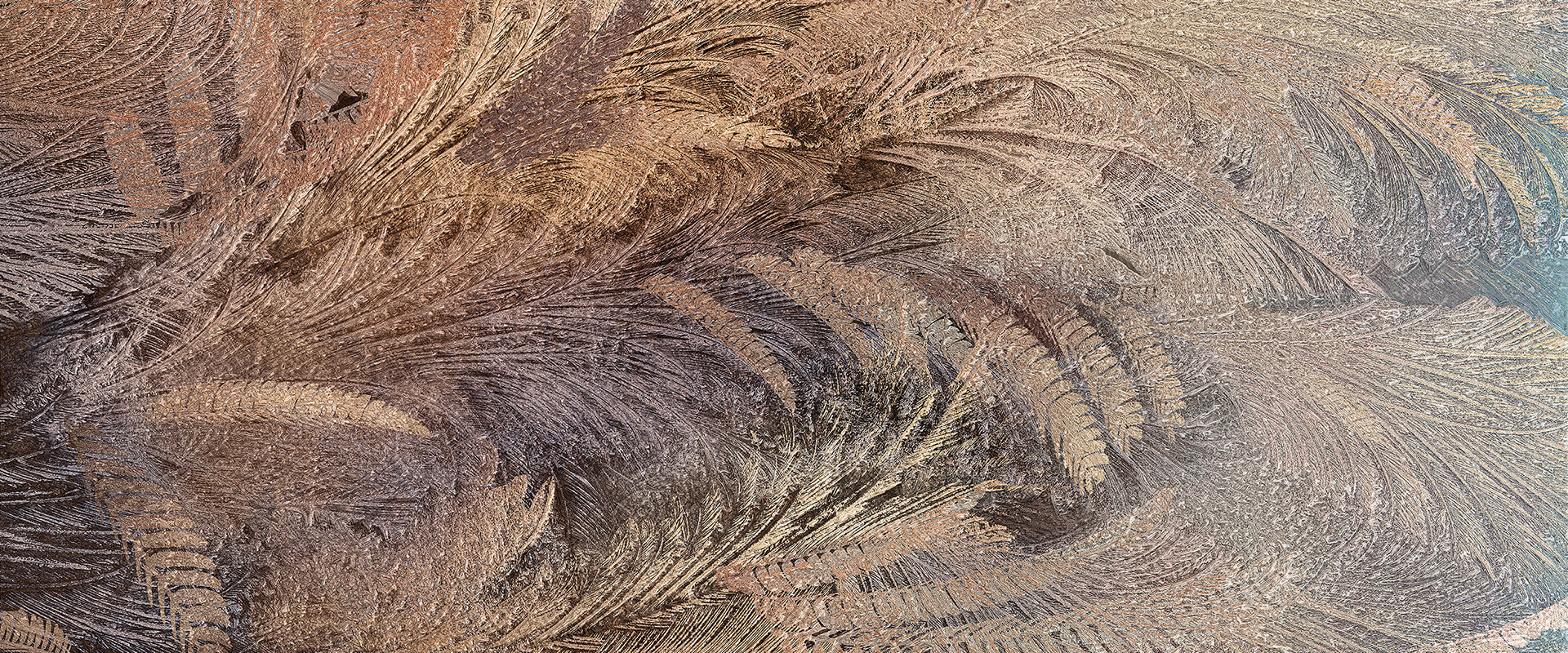 以高精度工藝重現葉脈的細膩紋理,交錯的曲線如自然生長的筆觸,帶著金棕與暮色的暖調漸層,交織出沉穩又富有生命力的視覺效果。