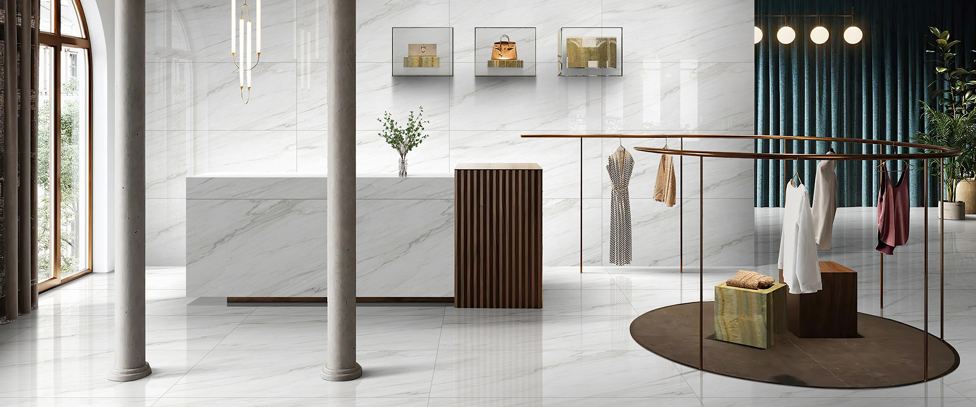 取自巴西白大理石的紋理精髓,潘朵拉呈現了一片潔白無瑕的色彩,以優雅的灰色紋理相融其中,溫柔淡雅不失高貴。