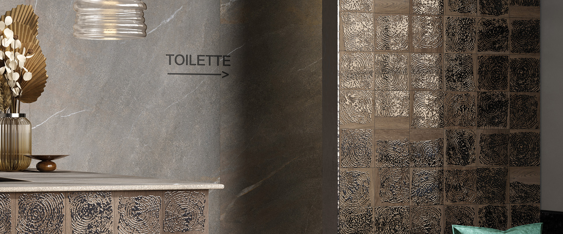 每一片磁磚,都是設計師手中的畫布,將工業感與藝術性融合,呈現抽象卻耐人尋味的節奏感。大面積鋪陳時,彷彿是城市的肌理與自然的脈動交錯,