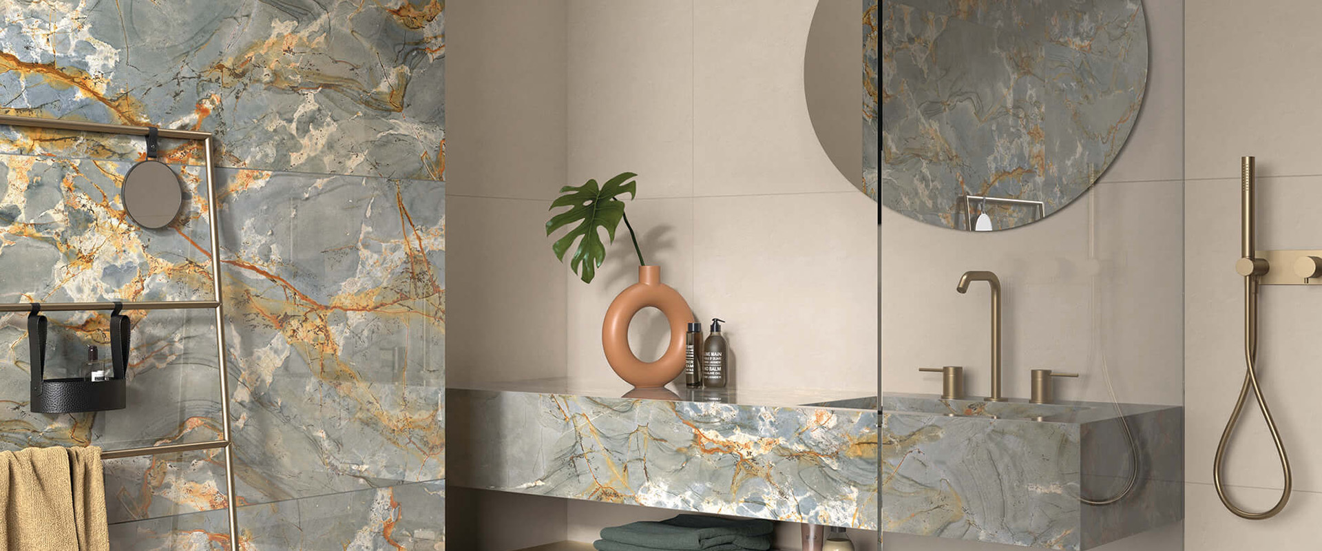 源於古羅馬時期用於特殊歷史建築的灰色系大理石,其華麗的紋理與層次豐富的色澤堆疊訴說著羅馬帝國的榮光與衰亡