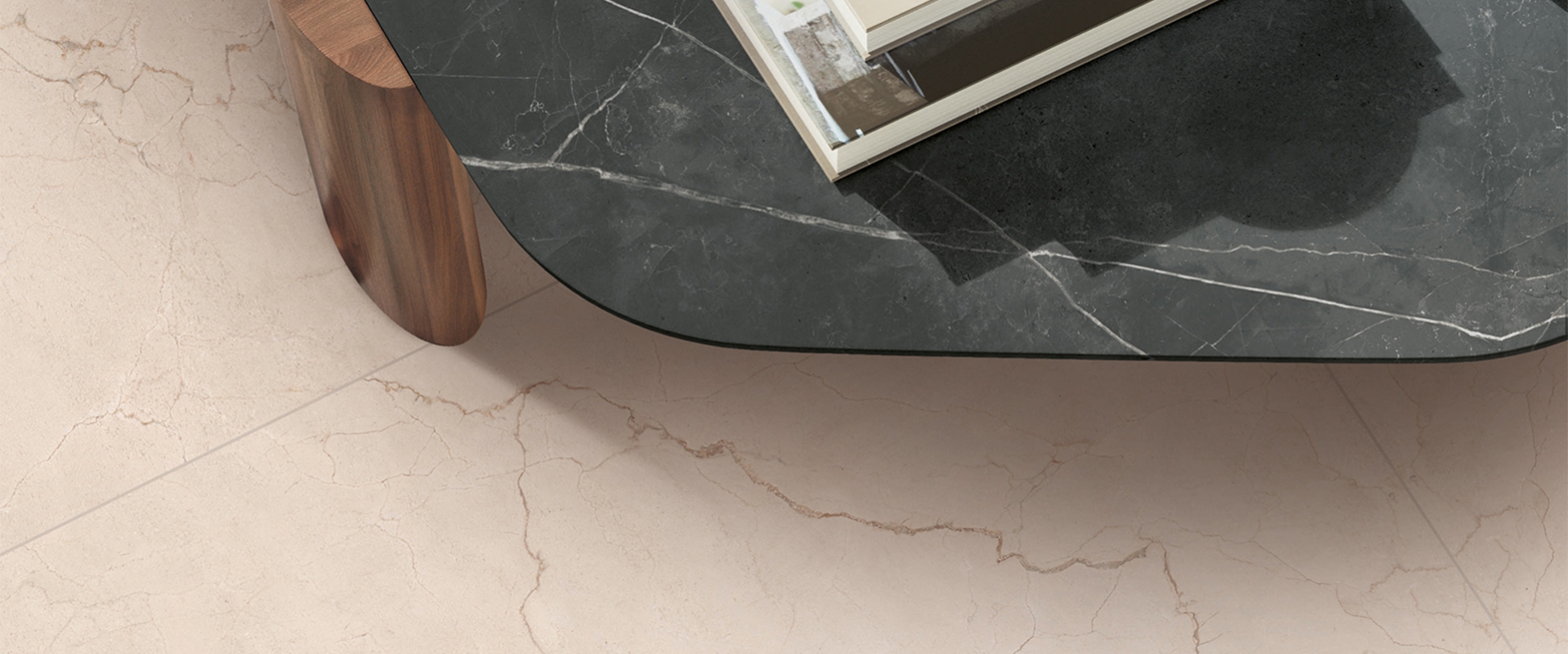 羅莎米黃磁磚的基底色如同溫暖的陽光,溫潤而明亮,融合了柔和的米黃色調和精細的紋理,營造出細膩而溫柔的氛圍