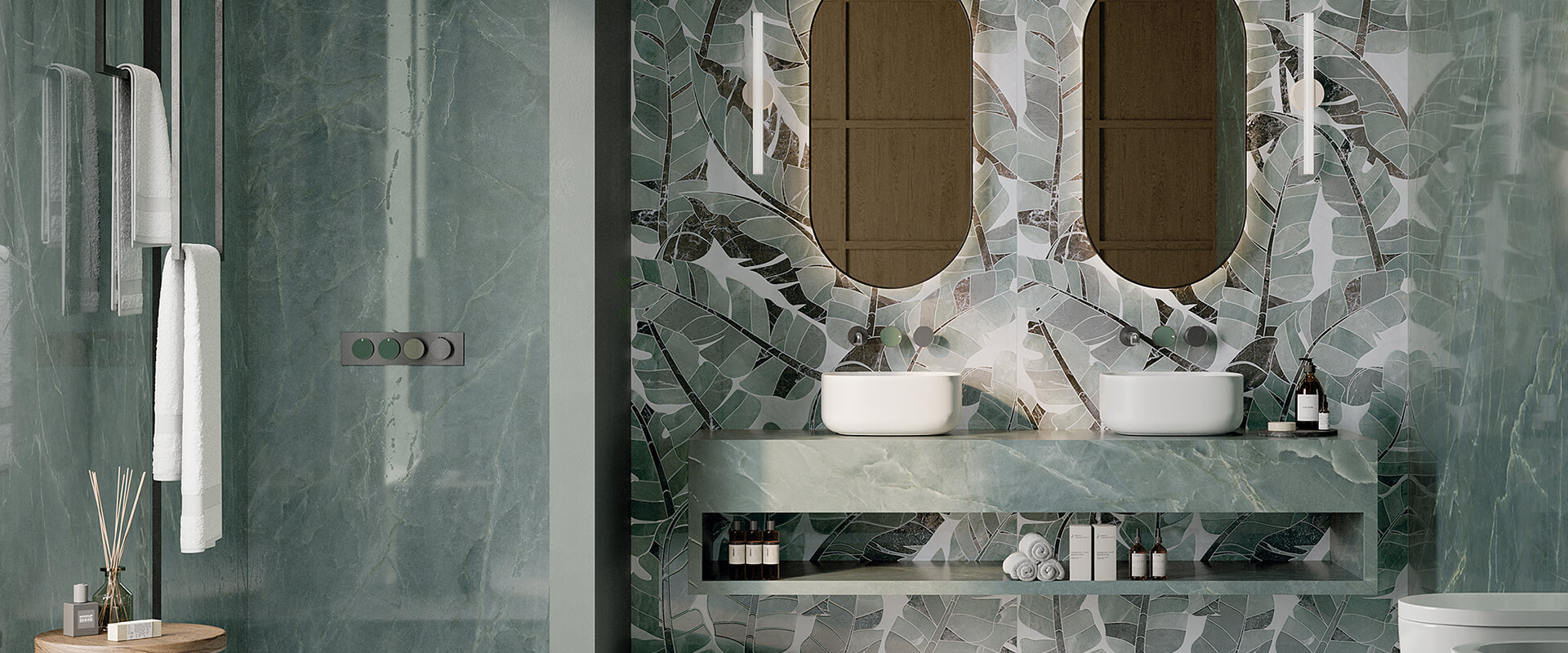 當涉足碧波青流,彷彿漫步於大自然的靈秀之中。翠綠晶瑩剔透的紋理,如同一湧而出的清泉,瀰漫著生機盎然的氛圍,讓空間即刻擁有了自然的生命力。