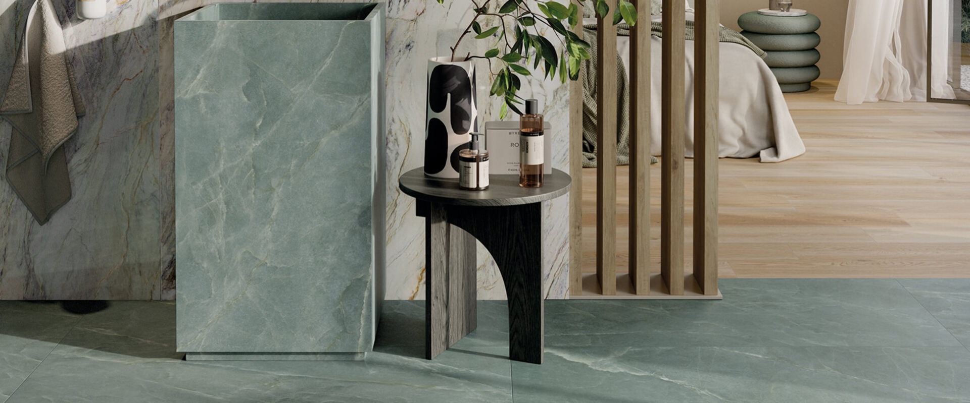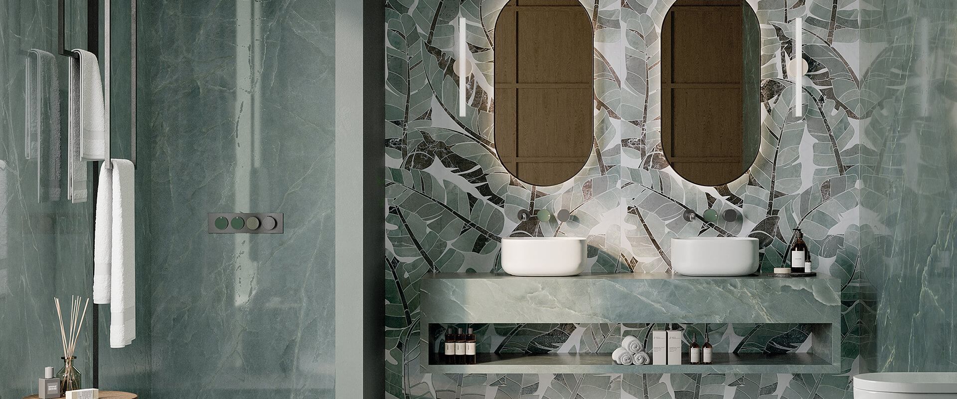 當涉足碧波青流,彷彿漫步於大自然的靈秀之中。翠綠晶瑩剔透的紋理,如同一湧而出的清泉,瀰漫著生機盎然的氛圍,讓空間即刻擁有了自然的生命力。