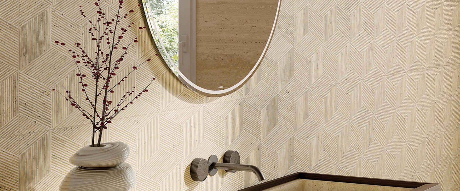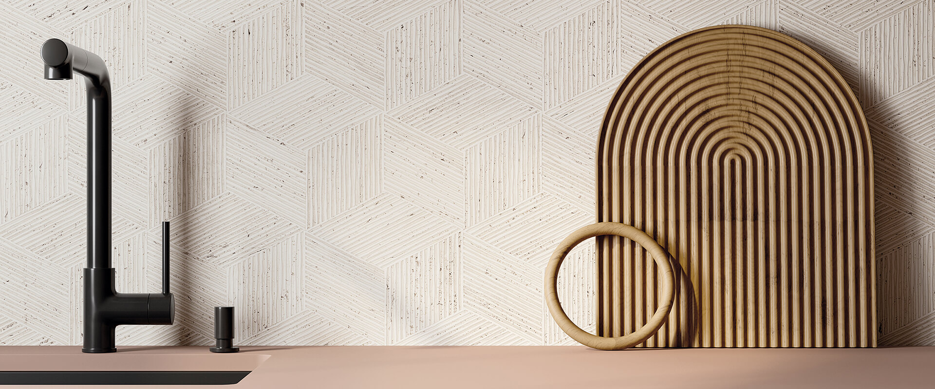 並擁有了多種模面變化,包含了有刻槽般及立方圖案變化的立體紋理,讓空間設計擁有更多變化性的選擇,同時也將文化與歷史的魅力融入您的生活之中。