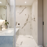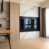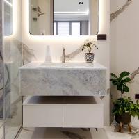白色大理石紋理,簡單卻沉穩的表現開拓了空間的視野