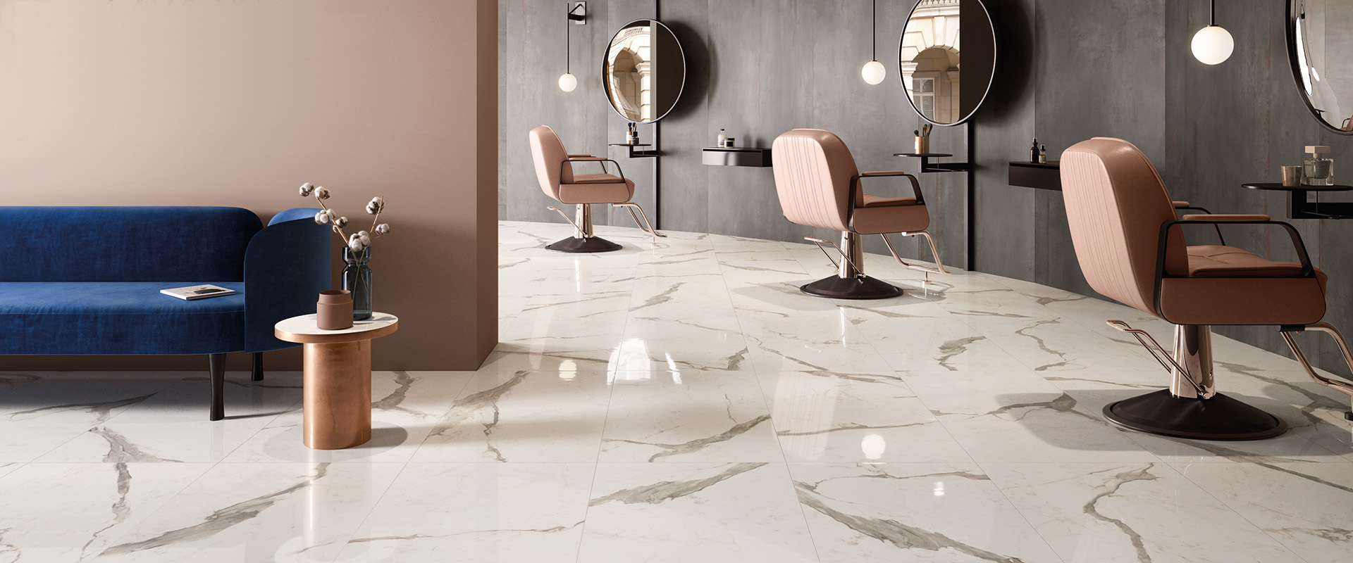 源自義大利設計,雍容自若、線條分明的石雕灰,輕易地將大理石融入了空間中