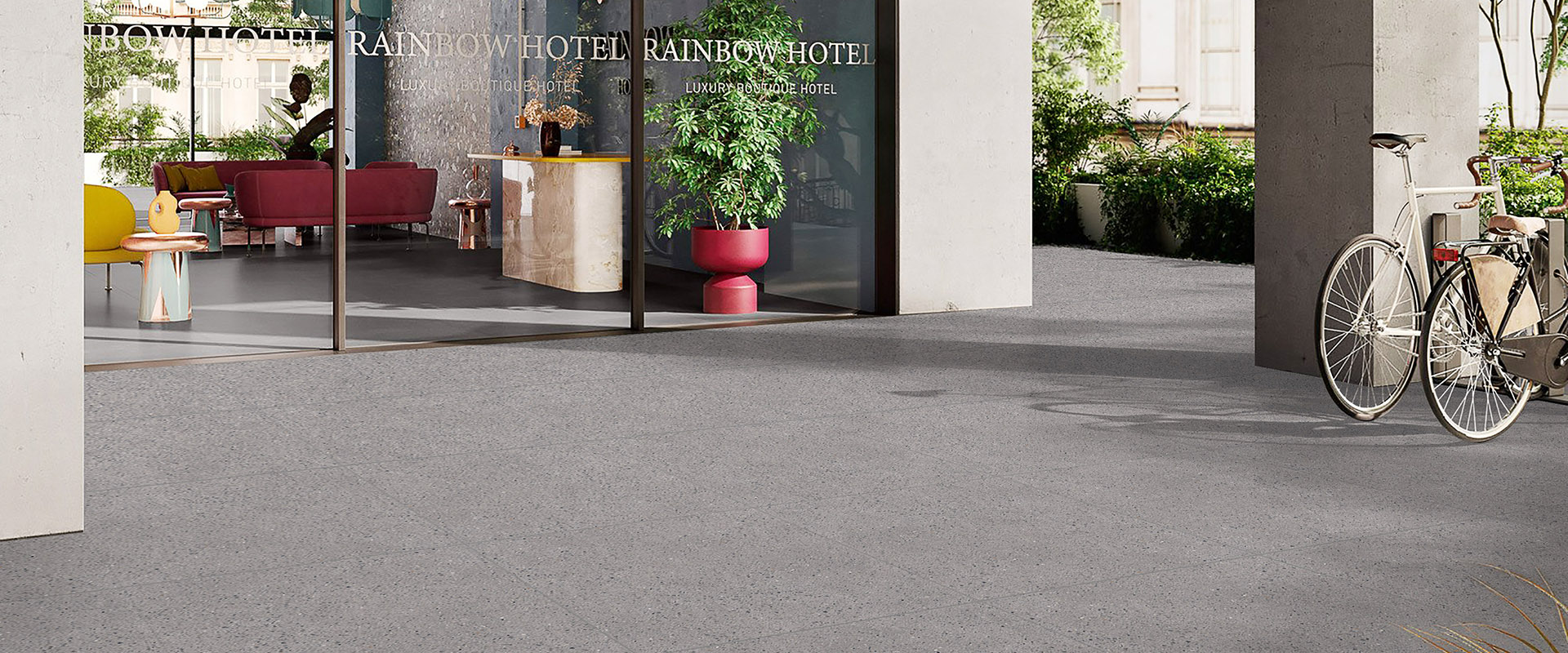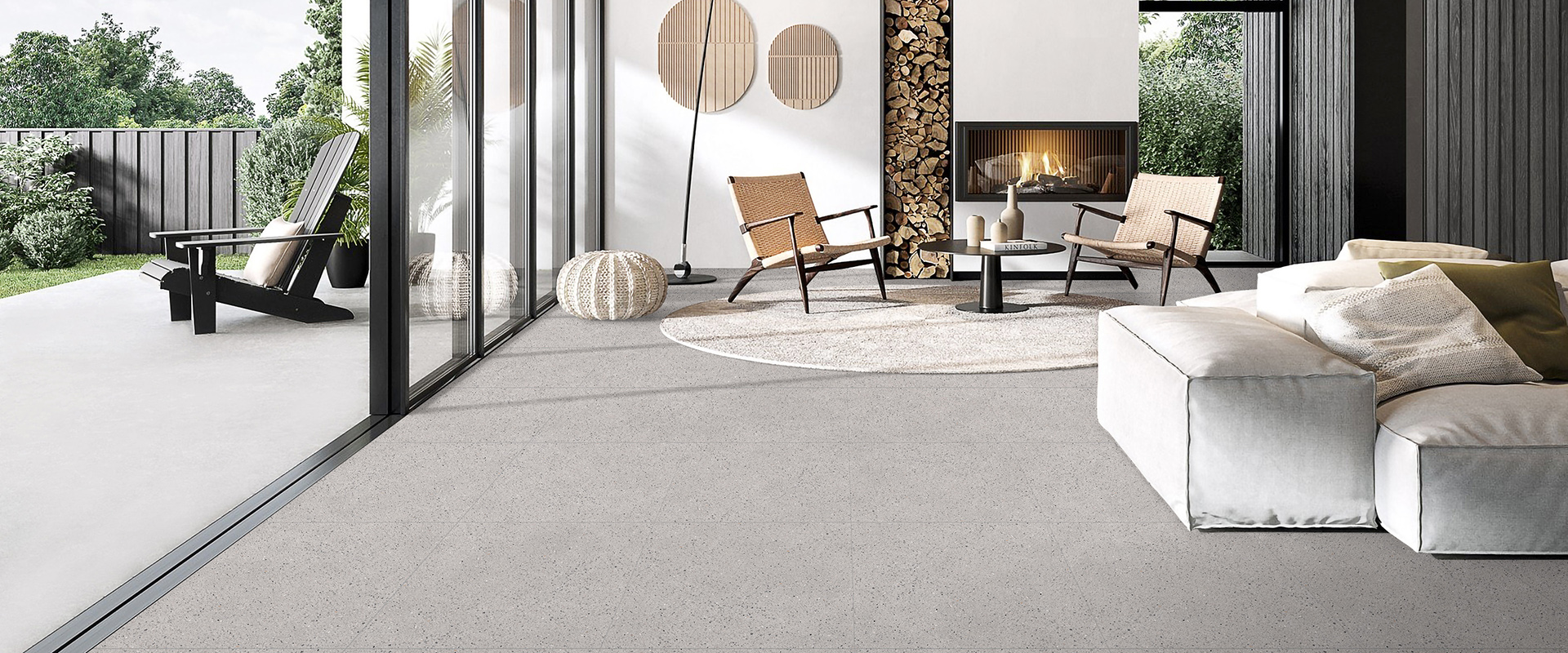 懷舊磨石取材自記憶中的老屋地坪,將碎石、砂粒與細粉的天然肌理再現於磚面,展現職人工藝的溫度。白色清爽純淨、淺灰柔和內斂、深灰沉穩大氣,三種色調以細緻石粒鋪陳出層次分明的視覺節奏。