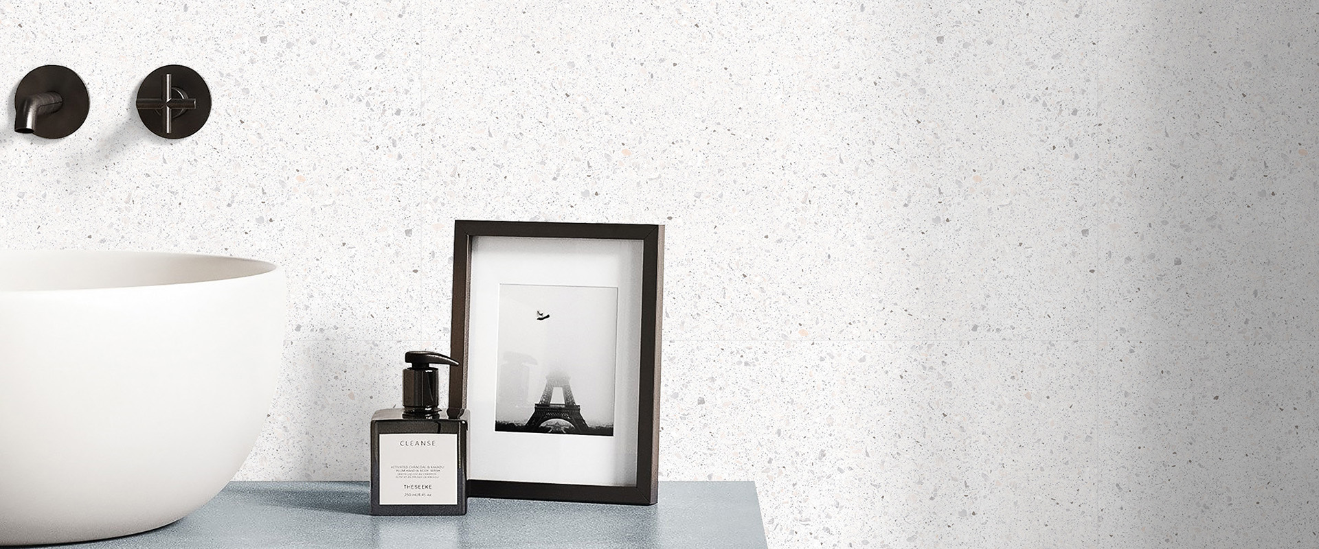 喚醒人們對傳統磨石子的熟悉感,並化作一種溫柔、溫潤的日常質感,於任何空間中都能自然生長出永不過時的美。。