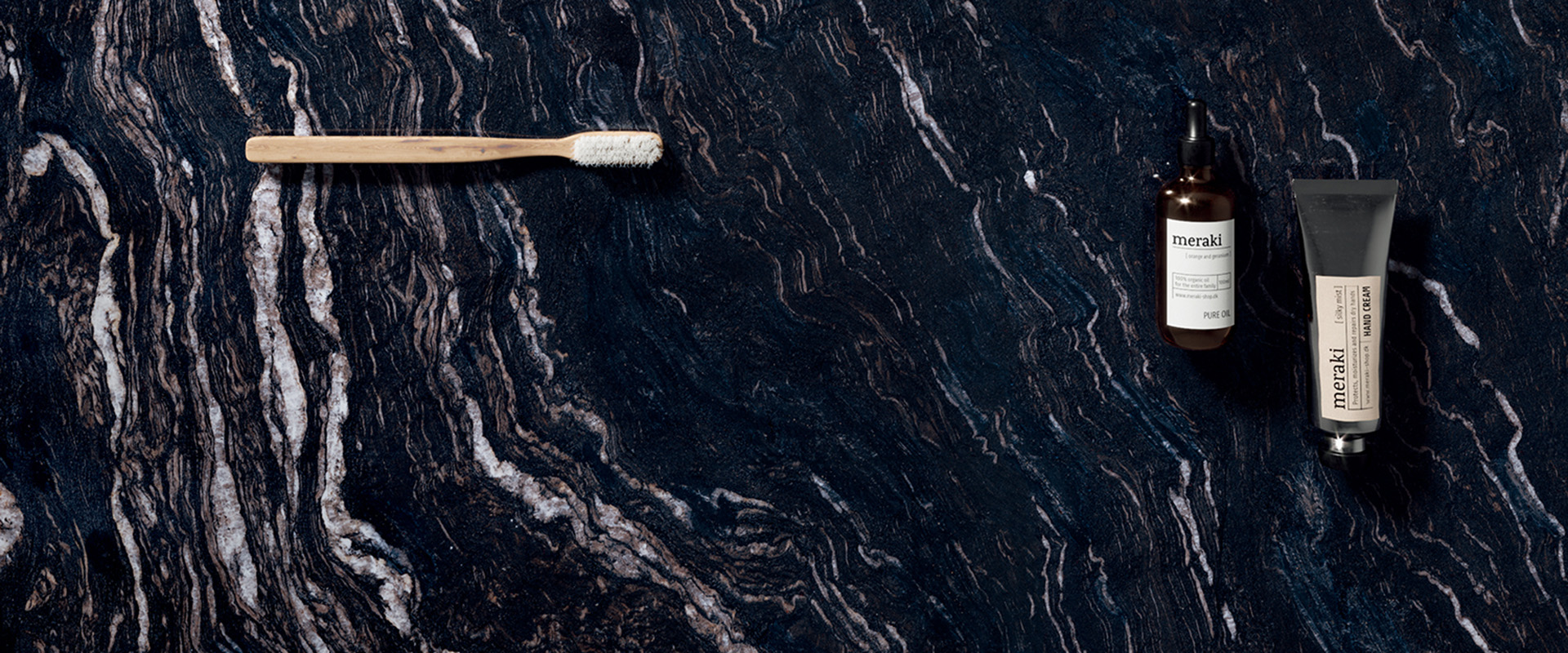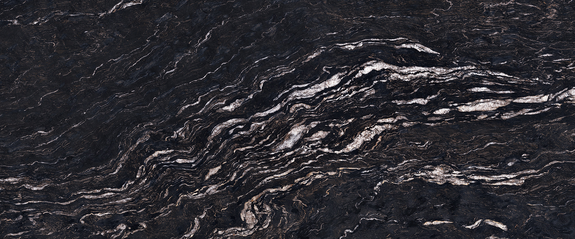 以巴西產出的黑色花崗岩為設計原想,在深邃夜幕中點綴上炙亮的星河脈絡
