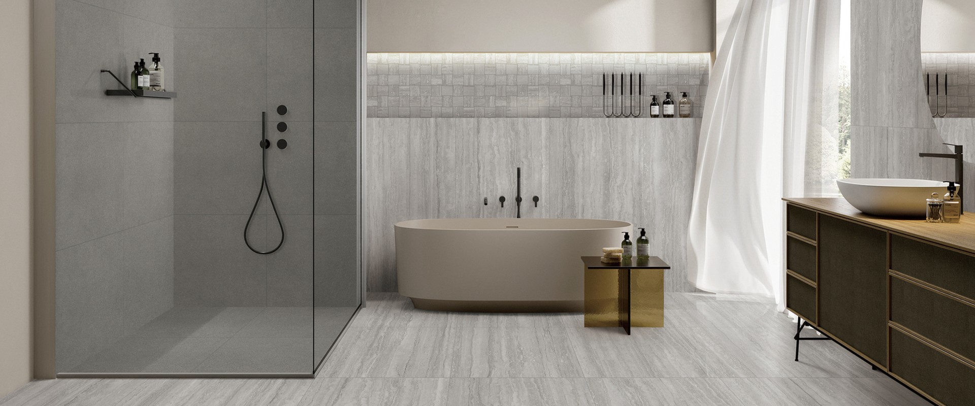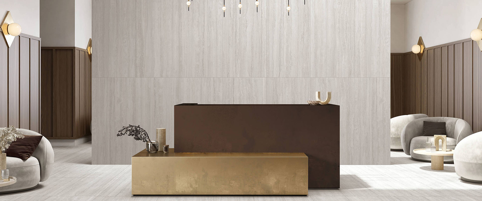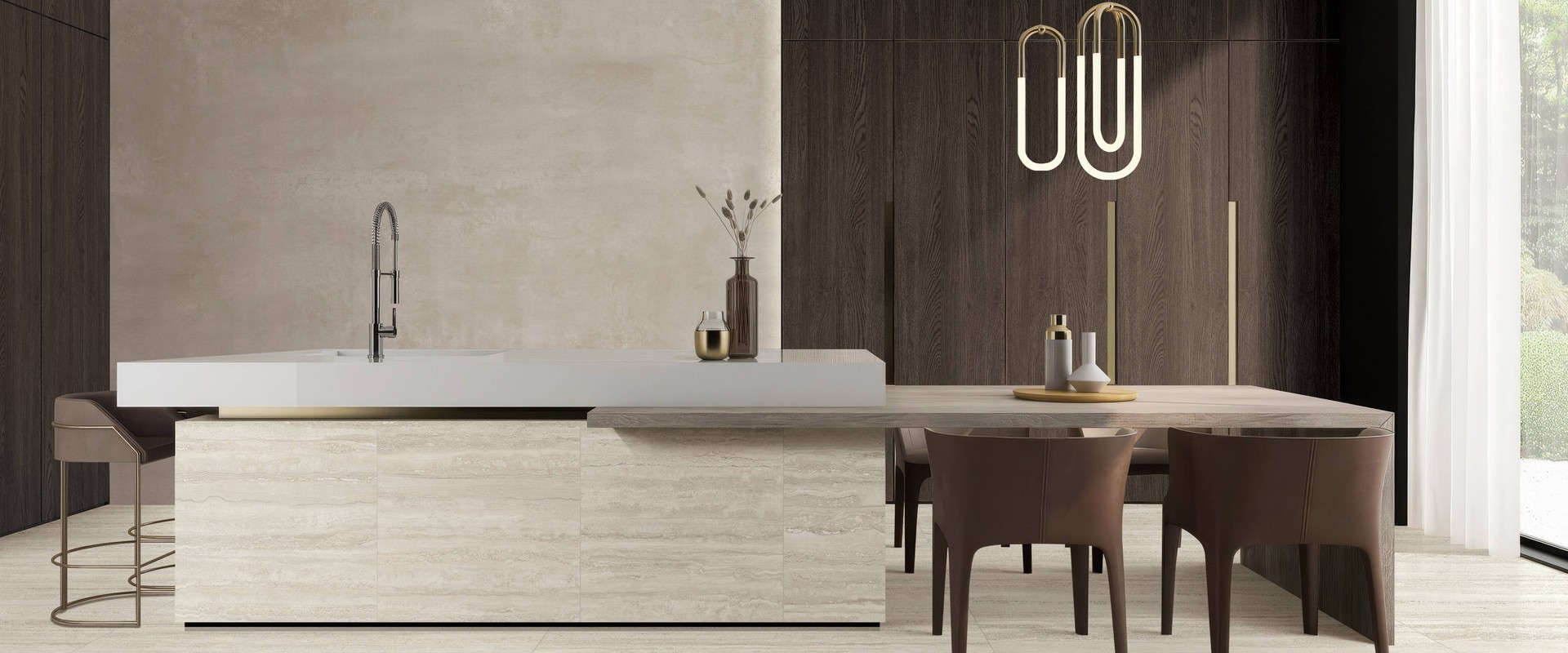 特雷沃斯通,取自洞石的自然風貌,將層層堆積的礦物紋理,轉化為空間中的沉著基底。細緻而延展的紋路,如同時間在岩層間留下的軌跡,低調卻富有深度。
