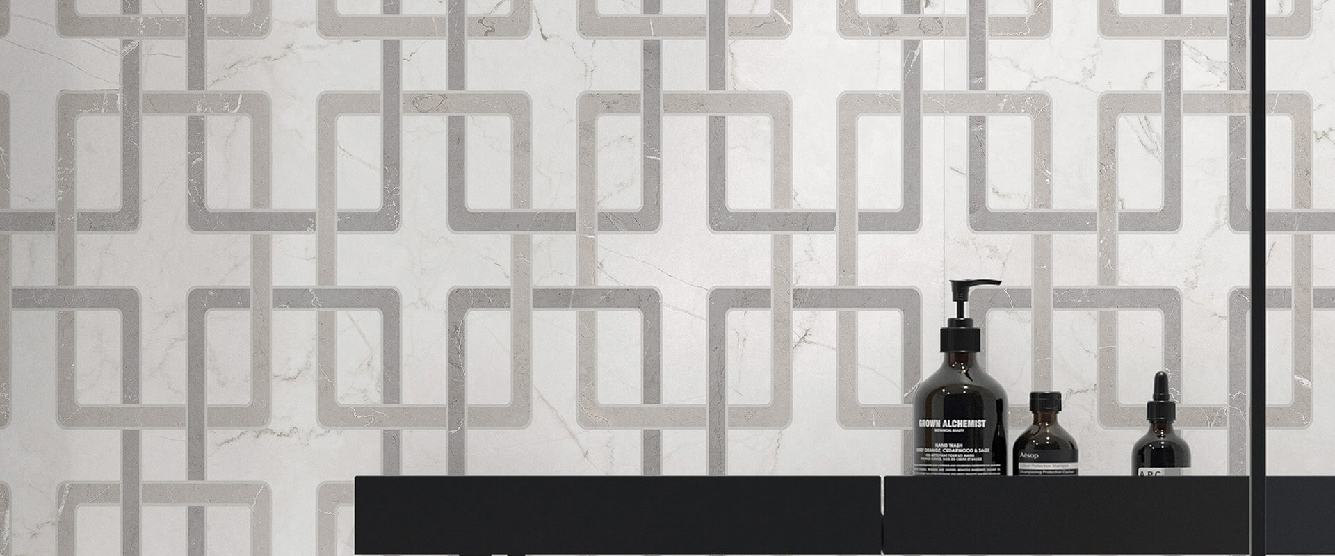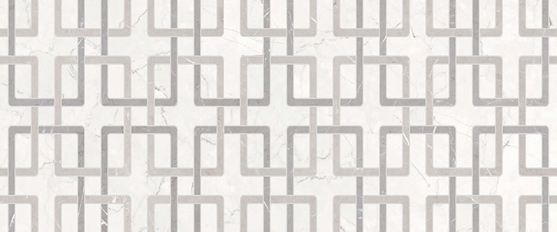 在古老宮殿的長廊中,光影交錯,石材與紋飾交織出一段段流轉的時光。「冷織迴廊」承襲這份經典韻味,以現代設計語彙重構古典迴廊的節奏美,將冷灰與暖白的色階融入連綿不斷的幾何鏈結之中。